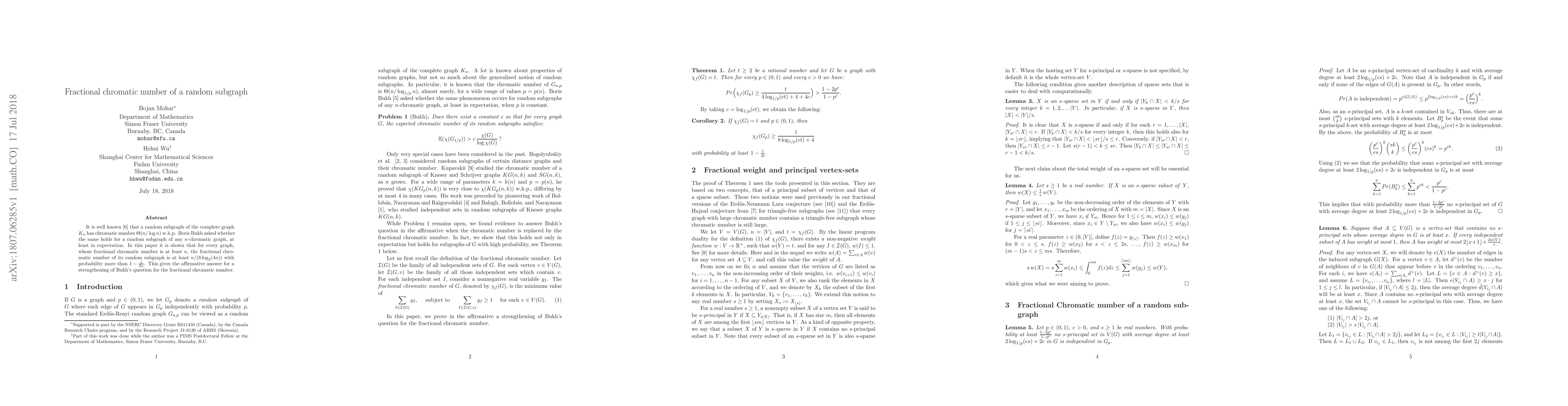 This paper demonstrates that for any $n$-chromatic graph, the fractional chromatic number of its random subgraph is at least $n/(8\log_2(4n))$ with high probability, confirming a strengthened version of Boris Bukh's question regarding the fractional chromatic number.