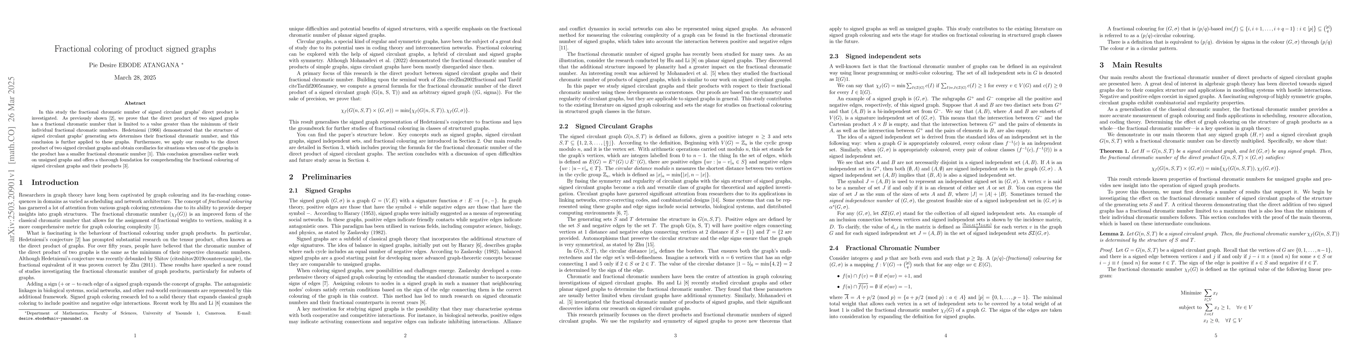 Researchers investigate the fractional chromatic number of signed circulant graphs' direct products, finding that it is limited to a value greater than the minimum of individual graph's fractional chromatic numbers.
