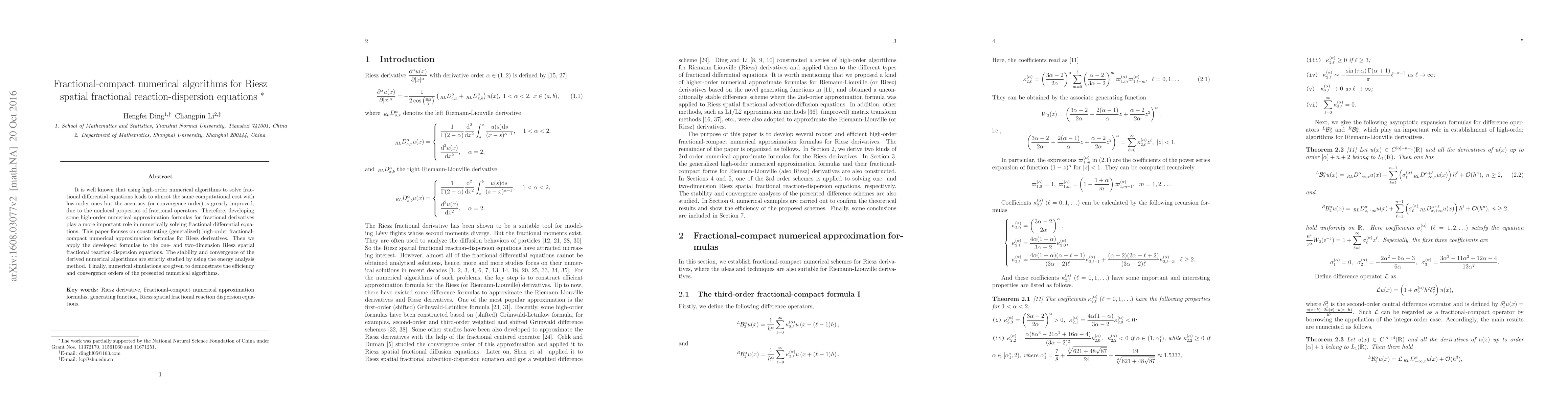 This paper develops high-order fractional-compact numerical algorithms for solving Riesz spatial fractional reaction-dispersion equations, focusing on generalized high-order approximation formulas for Riesz derivatives. The stability and convergence of the algorithms are rigorously analyzed, and numerical simulations confirm their efficiency and accuracy.