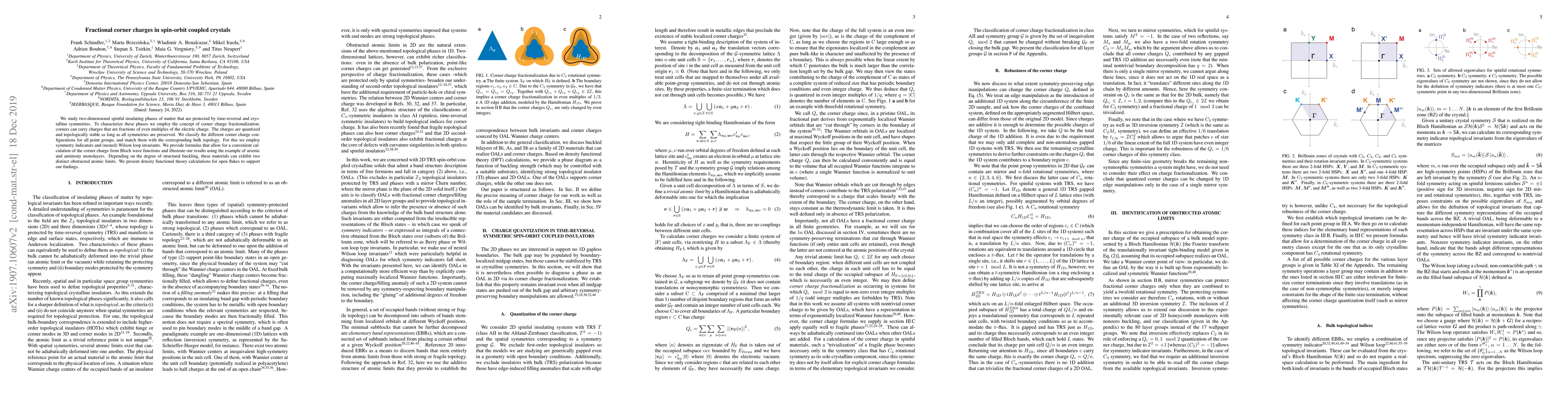 We study two-dimensional spinful insulating phases of matter that are protected by time-reversal and crystalline symmetries. To characterize these phases we employ the concept of corner charge fractionalization: Corners can carry charges that are fractions of even multiples of the electric charge. The charges are quantized and topologically stable as long as all symmetries are preserved. We classify the different corner charge configurations for all point groups, and match them with the corresponding bulk topology. For this we employ symmetry indicators and (nested) Wilson loop invariants. We provide formulas that allow for a convenient calculation of the corner charge from Bloch wavefunctions and illustrate our results using the example of arsenic and antimony monolayers. Depending on the degree of structural buckling, these materials can exhibit two distinct obstructed atomic limits. We present density functional theory calculations for open flakes to support our findings.