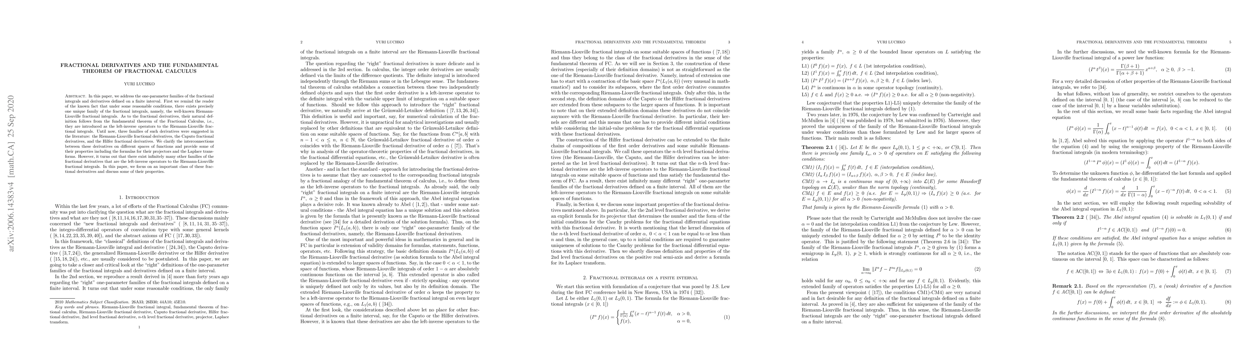 In this paper, we address the one-parameter families of the fractional integrals and derivatives defined on a finite interval. First we remind the reader of the known fact that under some reasonable conditions, there exists precisely one unique family of the fractional integrals, namely, the well-known Riemann-Liouville fractional integrals. As to the fractional derivatives, their natural definition follows from the fundamental theorem of the Fractional Calculus, i.e., they are introduced as the left-inverse operators to the Riemann-Liouville fractional integrals. Until now, three families of such derivatives were suggested in the literature: the Riemann-Liouville fractional derivatives, the Caputo fractional derivatives, and the Hilfer fractional derivatives. We clarify the interconnections between these derivatives on different spaces of functions and provide some of their properties including the formulas for their projectors and the Laplace transforms. However, it turns out that there exist infinitely many other families of the fractional derivatives that are the left-inverse operators to the Riemann-Liouville fractional integrals. In this paper, we focus on an important class of these fractional derivatives and discuss some of their properties.