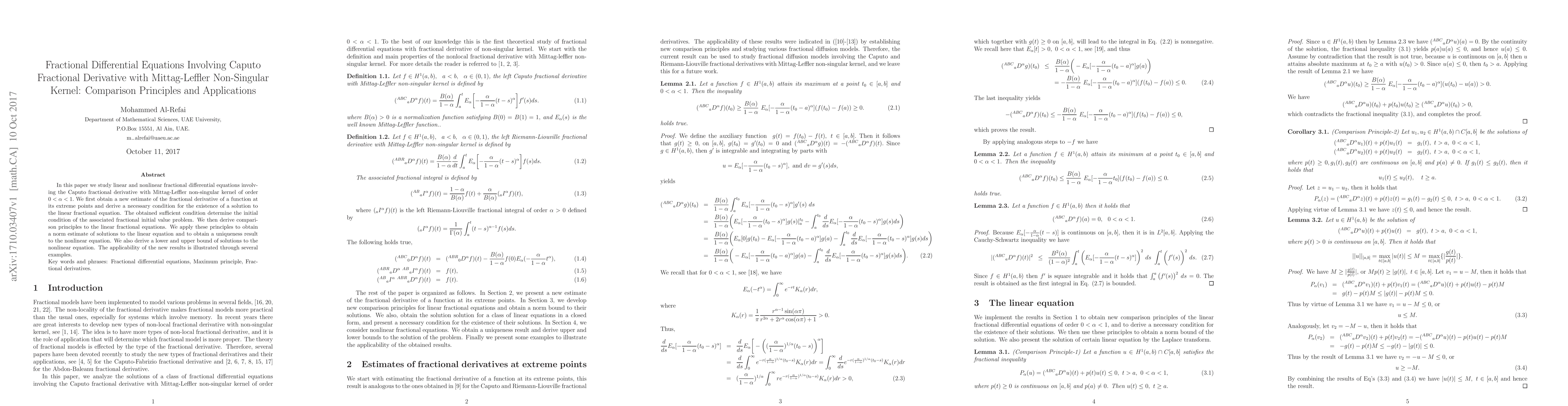 This paper investigates linear and nonlinear fractional differential equations using the Caputo fractional derivative with a Mittag-Leffler non-singular kernel. It establishes new estimates and comparison principles, and applies these to derive existence, uniqueness, and bounds for solutions, illustrated through practical examples.