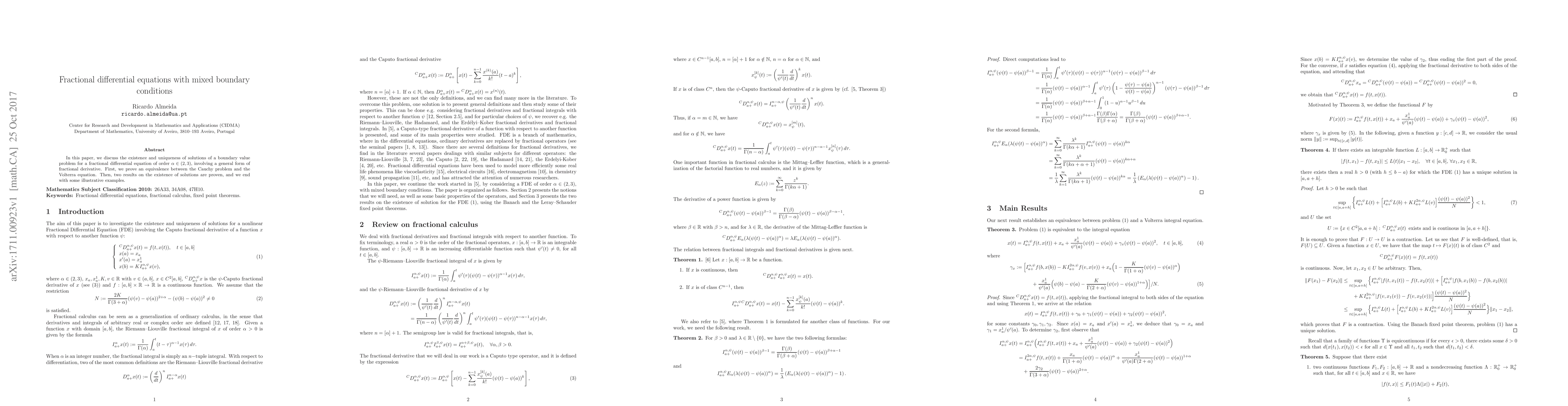 This paper investigates the existence and uniqueness of solutions to fractional differential equations with mixed boundary conditions, proving key equivalences and results for specific ranges of parameters.