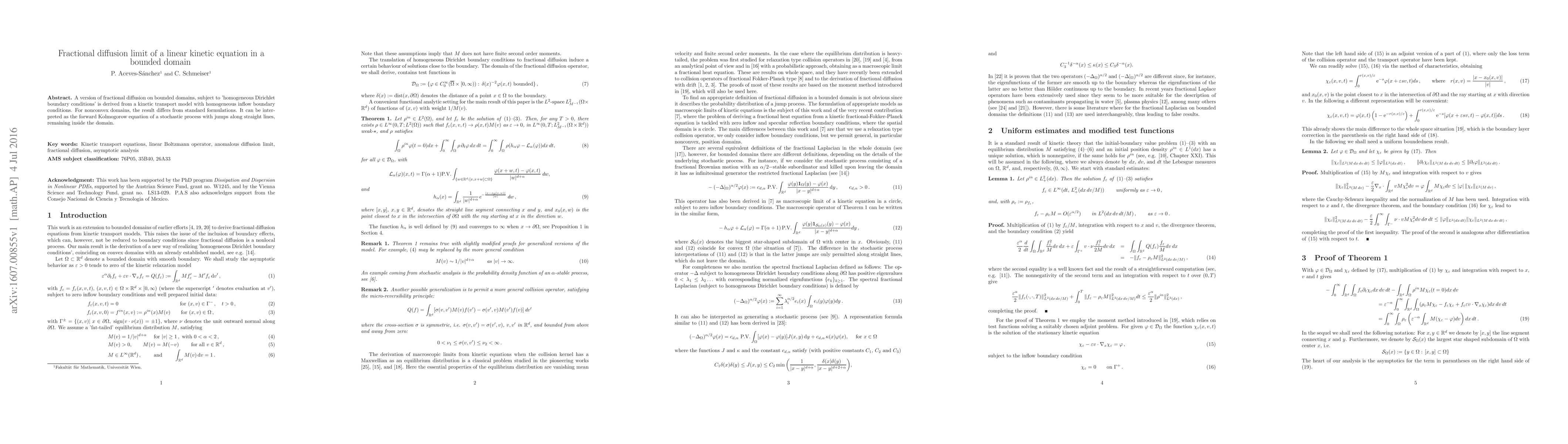 Summary: This paper derives a fractional diffusion limit on bounded domains from a kinetic transport model, revealing differences from standard formulations for nonconvex domains, interpreted as a forward Kolmogorow equation for a stochastic process with straight-line jumps.