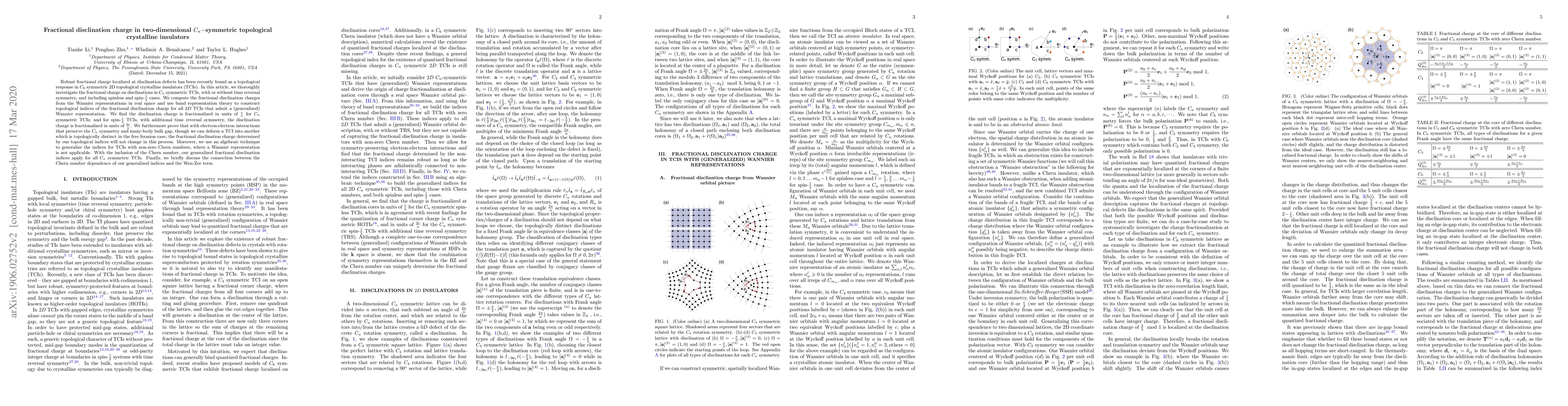 This paper investigates fractional disclination charges in $C_n$-symmetric 2D topological crystalline insulators, revealing that the charge is fractionalized in units of $\frac{e}{n}$ or $\frac{2e}{n}$ depending on spin and symmetry. The authors prove that these charges remain invariant under electron-electron interactions and deformations, and generalize the indices to include Chern numbers.