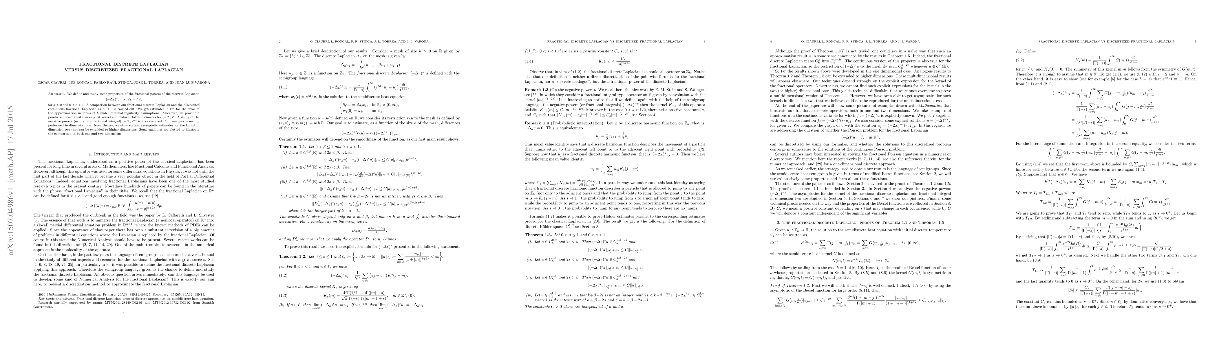 Laplacian $$(-\Delta_h)^s,\quad\hbox{on}~\mathbb{Z}_h = h\mathbb{Z},$$ for