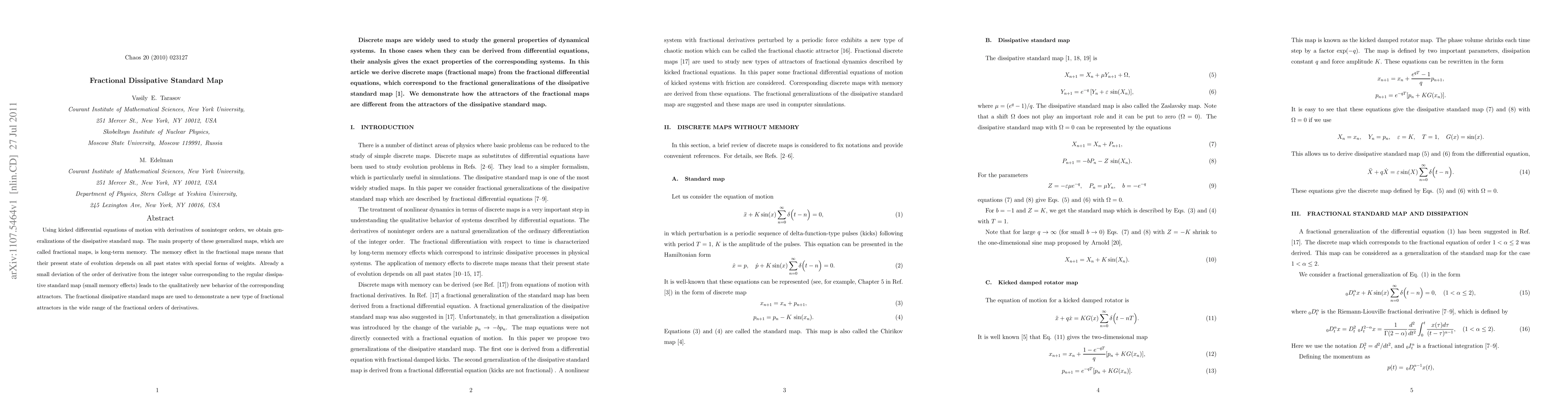 This paper explores fractional generalizations of the dissipative standard map using noninteger-order derivatives, revealing long-term memory effects. Even minor deviations in derivative order lead to qualitatively new attractor behaviors, showcasing a novel type of fractional attractors across various fractional orders.