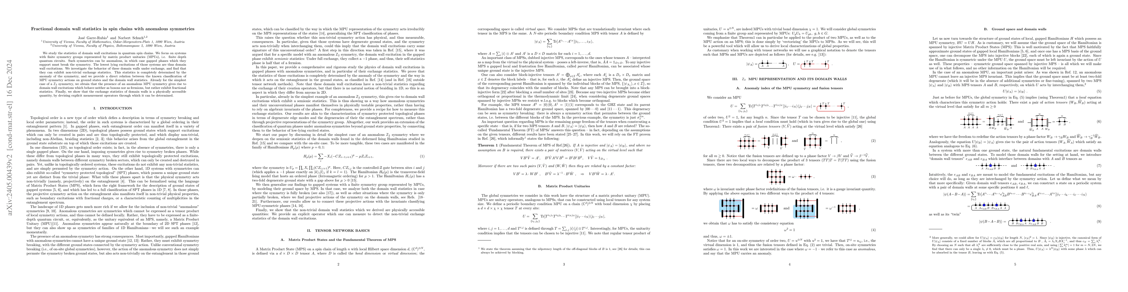 This paper investigates domain wall excitations in quantum spin chains with anomalous symmetries, revealing that these walls exhibit non-trivial, fractional statistics determined by the symmetry's anomaly. Measurement operators are proposed to determine this exchange statistics experimentally.