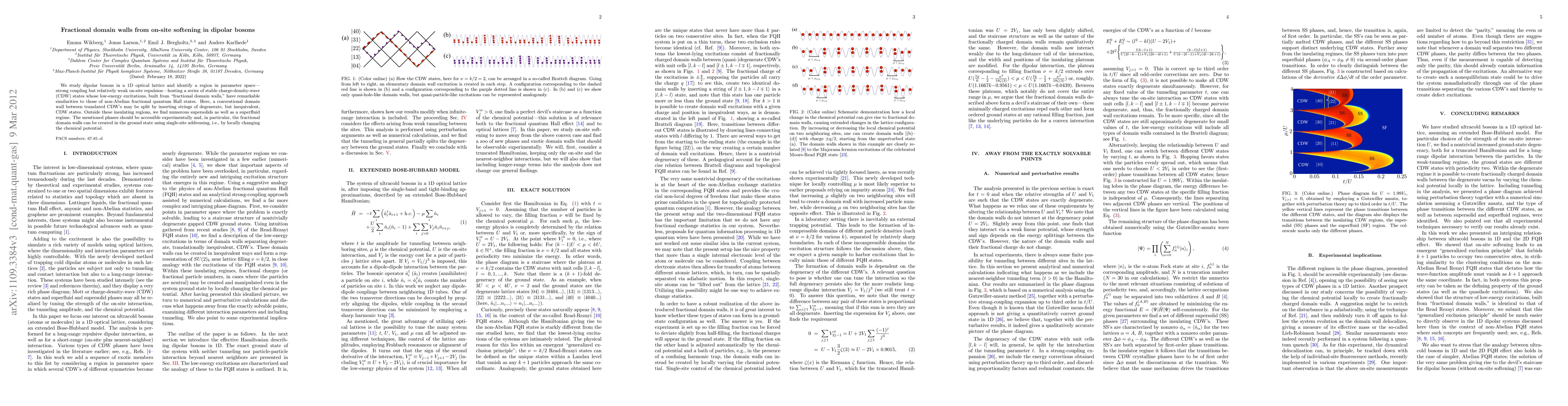 The paper investigates dipolar bosons in a 1D optical lattice, identifying stable charge-density-wave states with fractional domain walls, similar to non-Abelian fractional quantum Hall states, accessible via single-site addressing. Outside these regions, supersolids and a superfluid regime are also observed.