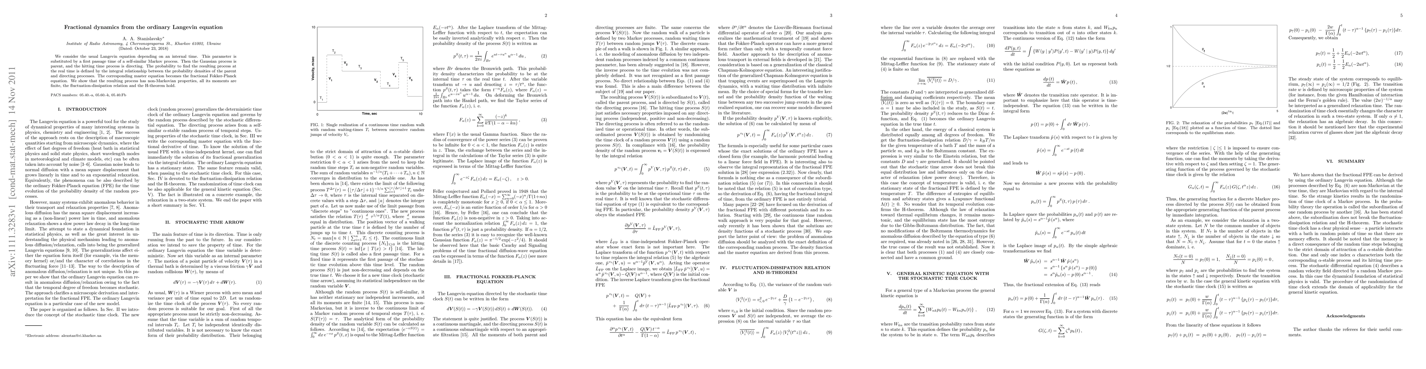 This paper explores the transformation of the ordinary Langevin equation into a fractional dynamics model by substituting the internal time with a first passage time of a self-similar Markov process, leading to a fractional Fokker-Planck equation with non-Markovian properties and finite moments. The study confirms the validity of the fluctuation-dissipation relation and the H-theorem in this context.