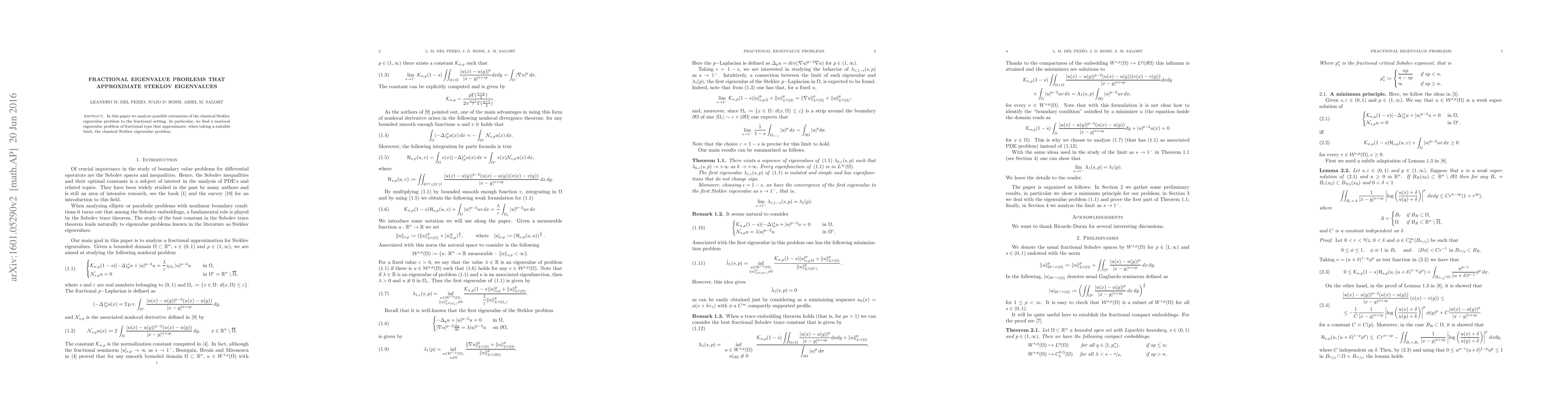 This paper explores the extension of the classical Steklov eigenvalue problem into a fractional setting, identifying a nonlocal fractional eigenvalue problem that approximates the classical Steklov problem in the appropriate limit.