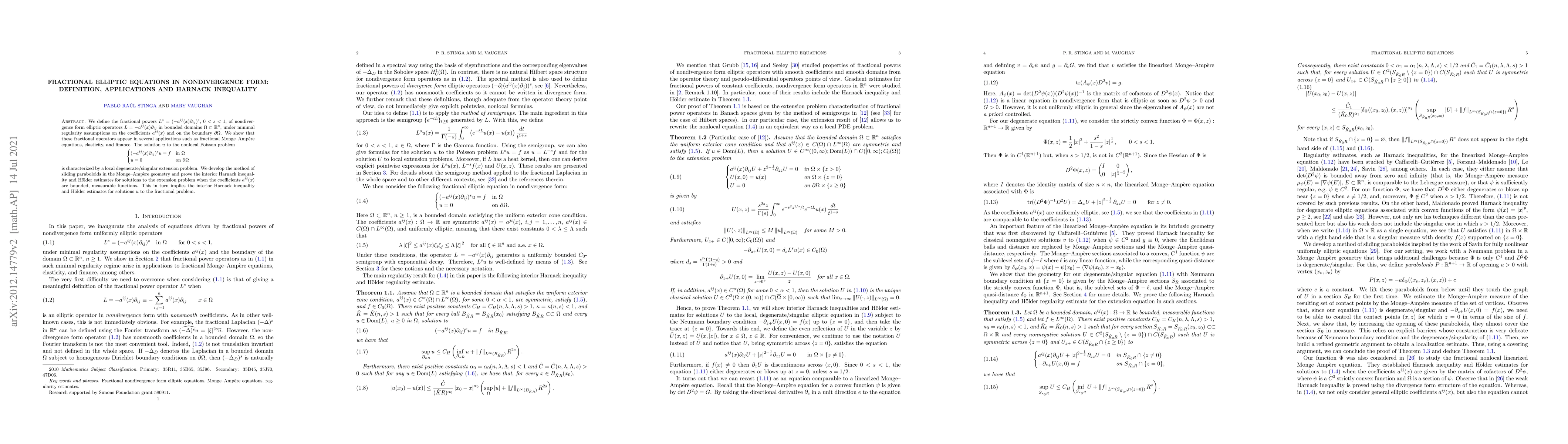 This paper defines fractional powers of nondivergence form elliptic operators and explores their applications in fields like fractional Monge-Ampère equations, elasticity, and finance. It proves the interior Harnack inequality and Hölder estimates for solutions to these fractional elliptic equations under minimal regularity assumptions.