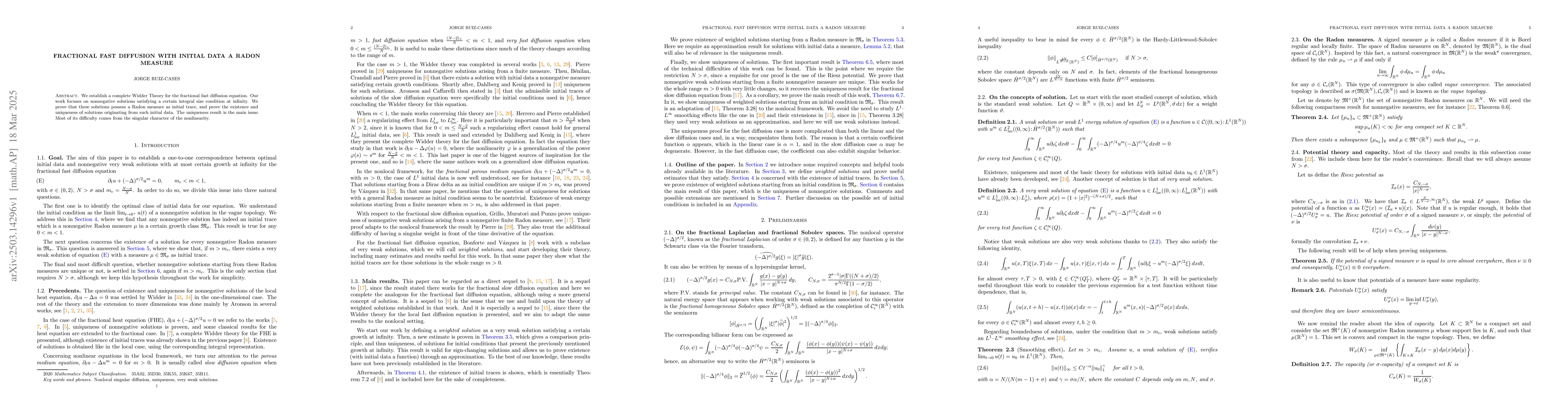 The paper presents a complete Widder Theory for fractional fast diffusion equations and proves existence and uniqueness of solutions with initial data as a Radon measure.