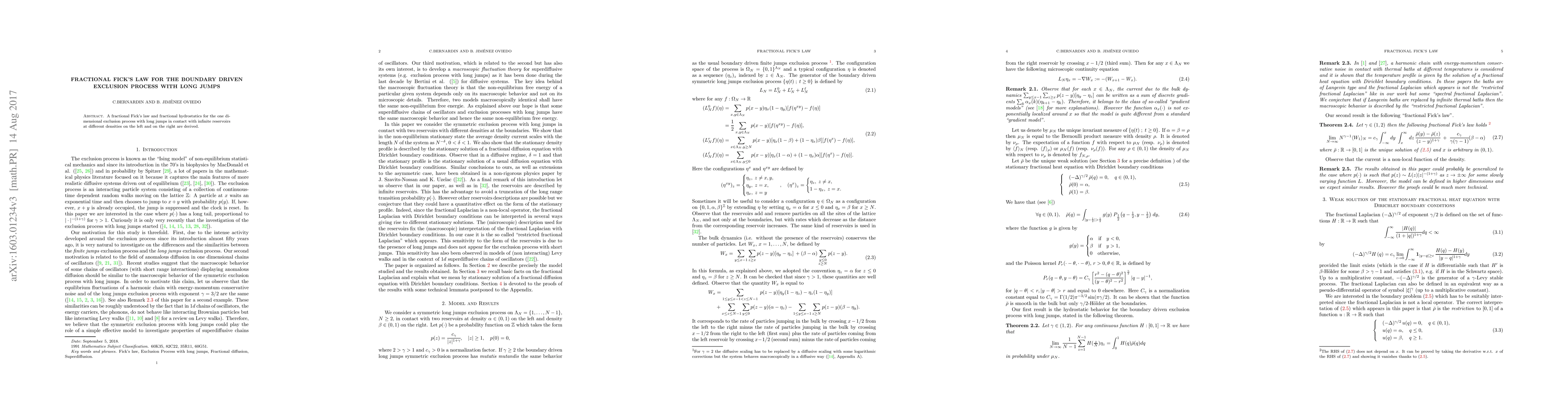 Summary: This paper derives a fractional Fick's law and fractional hydrostatics for the one-dimensional exclusion process with long jumps, considering systems in contact with infinite reservoirs at different densities. The results provide insights into non-local diffusion mechanisms in such systems.
