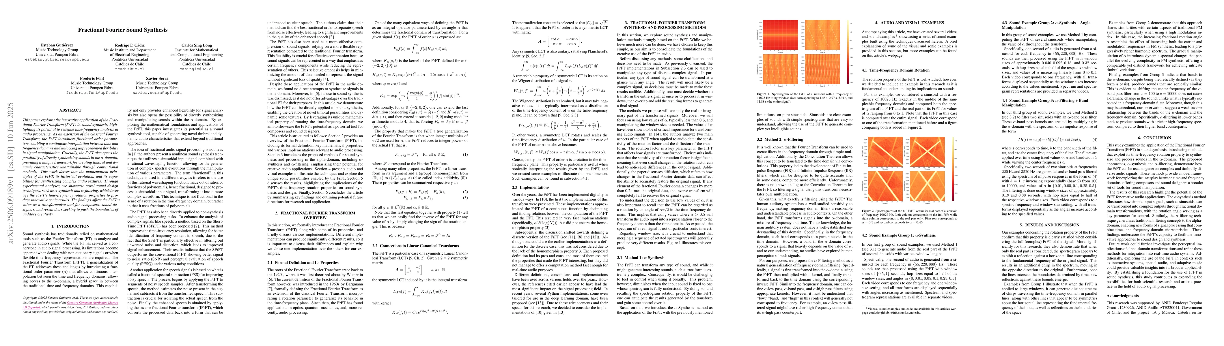 This paper introduces Fractional Fourier Transform (FrFT) for sound synthesis, enabling unprecedented flexibility in signal manipulation and direct alpha-domain sound generation. The study showcases novel sound design techniques using FrFT's time-frequency rotation properties to create innovative sonic results.