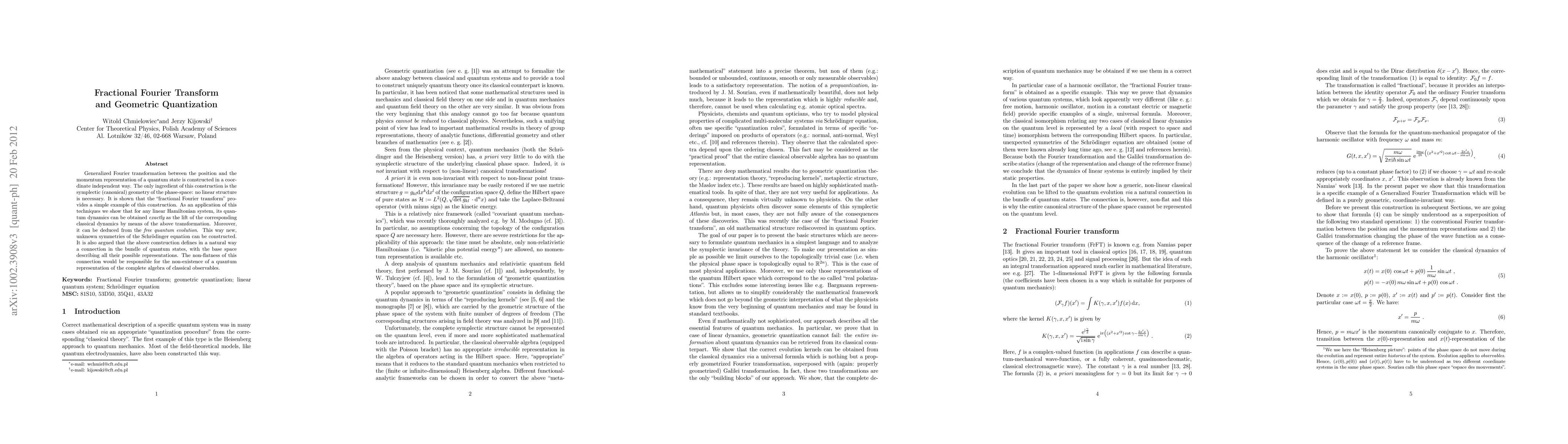This paper constructs a generalized Fourier transformation using symplectic geometry, demonstrating that the fractional Fourier transform exemplifies this construction. It applies this method to linear Hamiltonian systems, revealing exact quantum dynamics from classical dynamics and uncovering new symmetries in the Schrödinger equation.