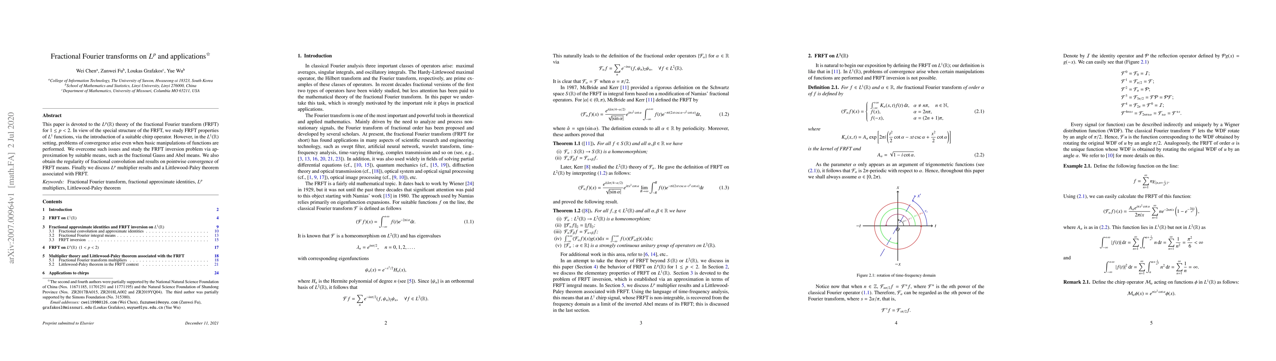 This paper explores the properties and applications of fractional Fourier transforms on L^p functions, focusing on inversion problems, regularity results, and Littlewood-Paley theorems.