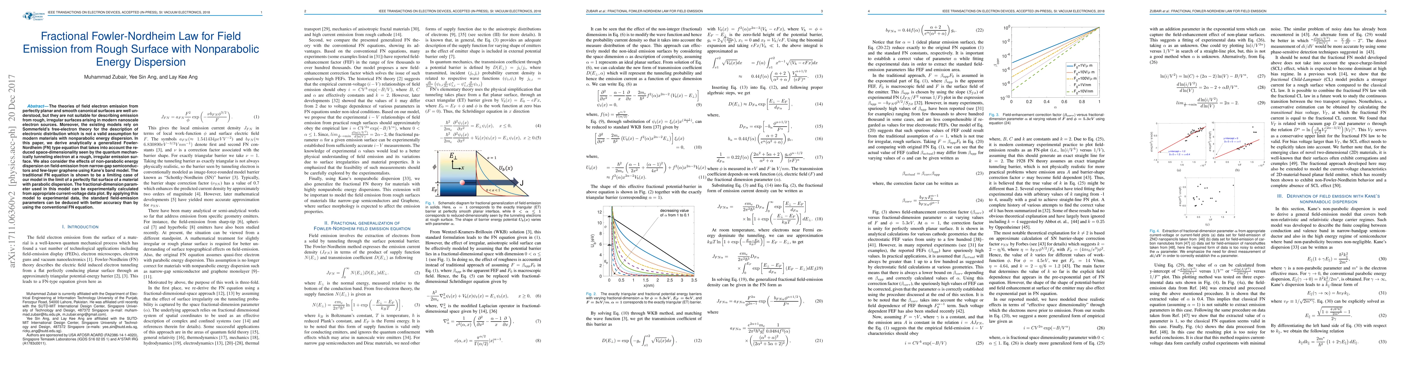 This paper develops a generalized Fowler-Nordheim equation for field emission from rough, irregular surfaces, incorporating nonparabolic energy dispersion and reduced space-dimensionality. It provides a more accurate model for modern nanoscale electron sources compared to traditional methods.