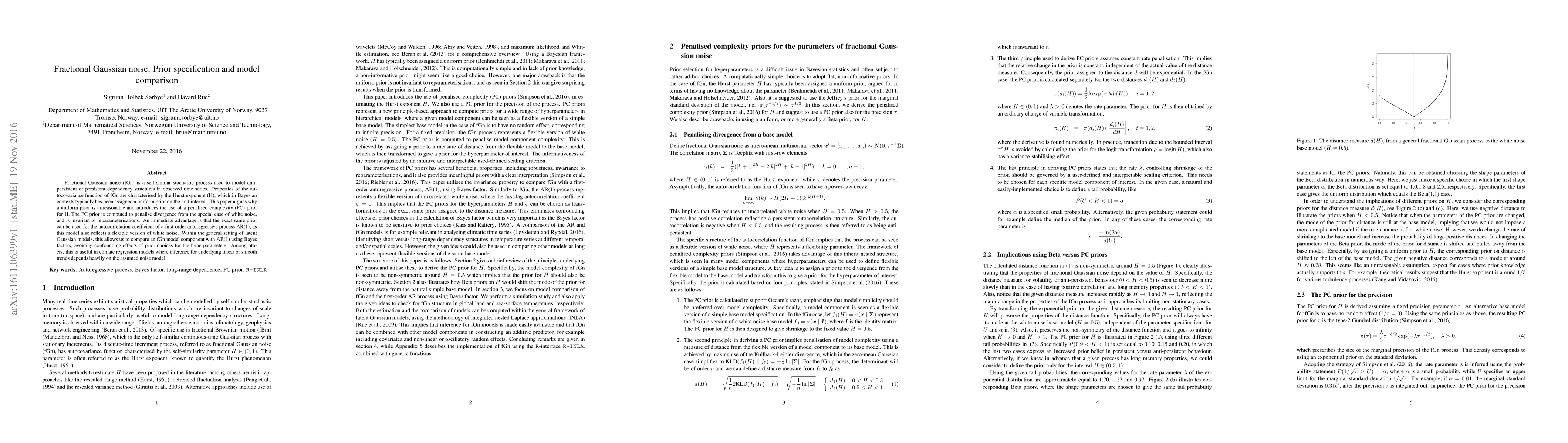 This paper critiques the common use of a uniform prior for the Hurst exponent in Fractional Gaussian noise (fGn) models and proposes a penalised complexity (PC) prior instead. The PC prior ensures consistency with white noise, is reparameterisation-invariant, and can also be applied to AR(1) models. This enables direct Bayesian comparison of fGn and AR(1) models within latent Gaussian models, offering significant benefits for applications like climate regression models.