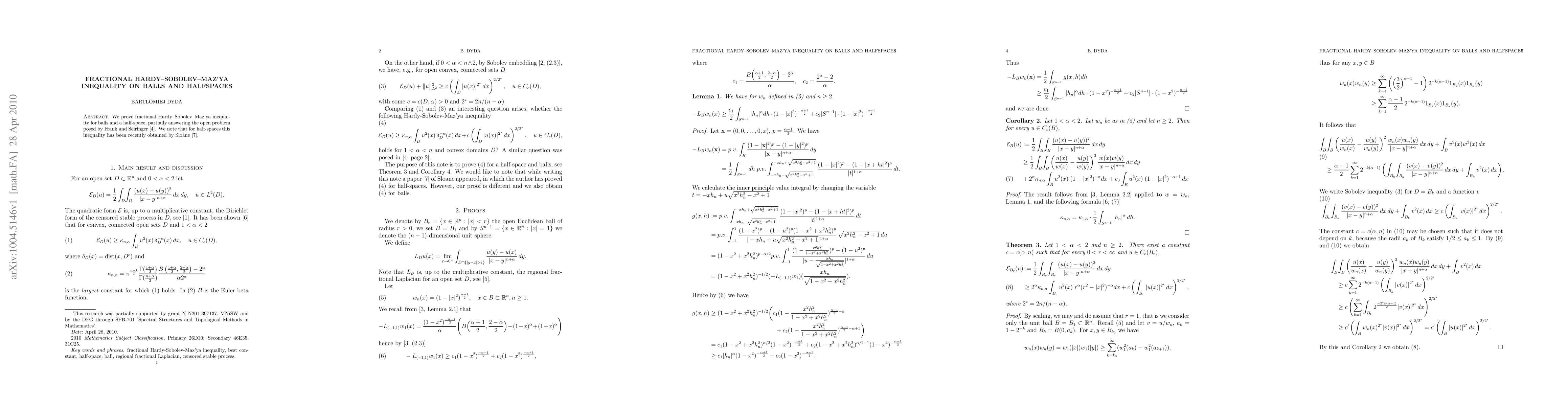 We prove fractional Hardy--Sobolev--Maz'ya inequality for balls and a half-space, partially answering the open problem posed by Frank and Seiringer [arXiv:0906.1561v1 [math.FA], 2009] We note that for half-spaces this inequality has been recently obtained by Sloane [arXiv:1004.4828v1 [math.FA], 2010].