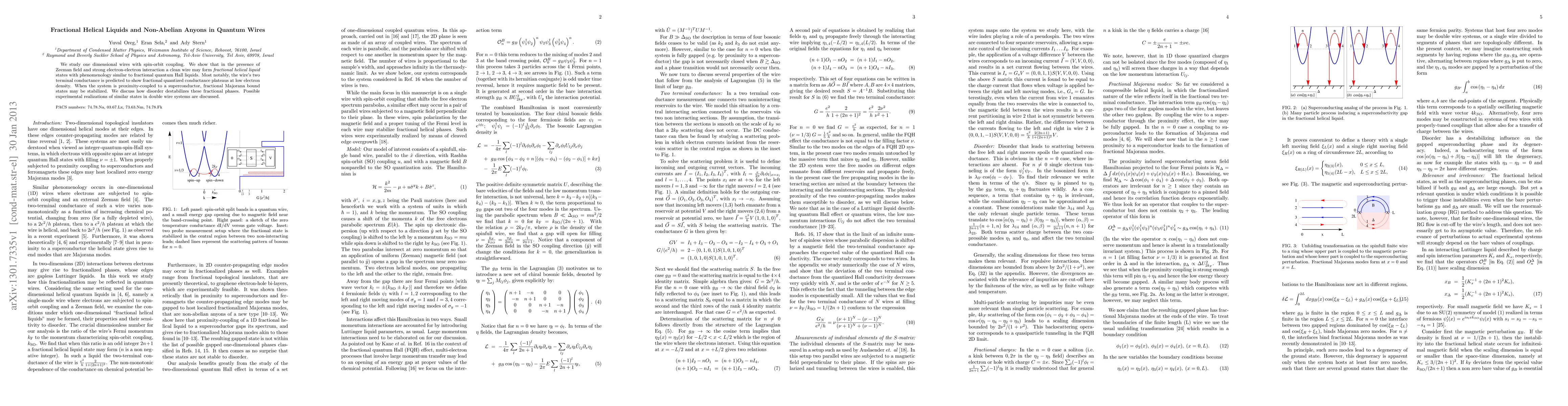 This paper investigates one-dimensional quantum wires with spin-orbit coupling and demonstrates the formation of fractional helical liquid states under strong electron-electron interactions and Zeeman fields, exhibiting fractional quantized conductance. It also explores the stabilization of fractional Majorana bound states when coupled to superconductors, and discusses the impact of disorder on these states.