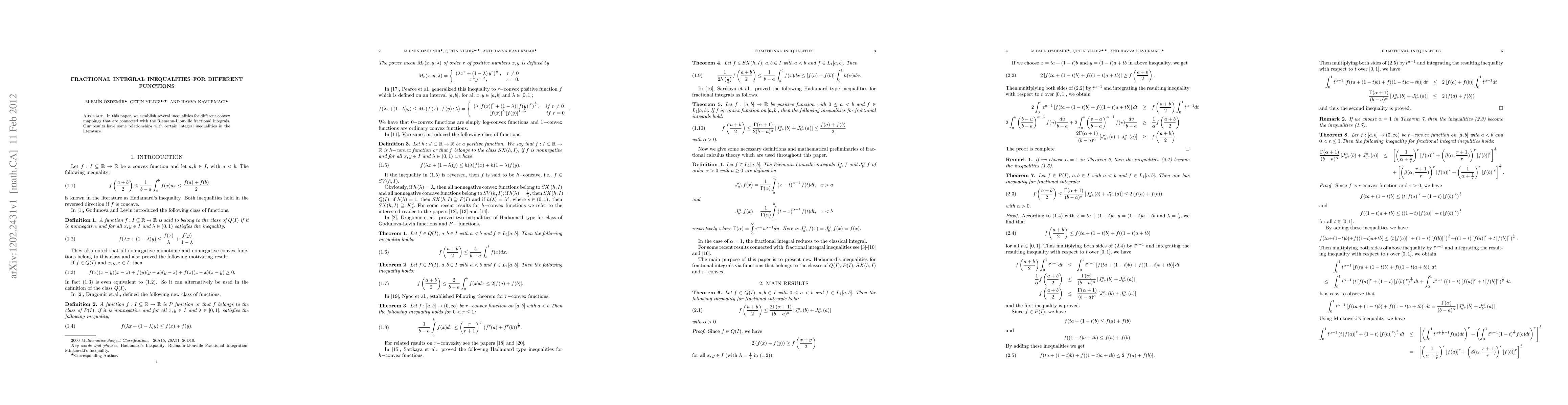 In this paper, we establish several inequalities for different convex mappings that are connected with the Riemann-Liouville fractional integrals. Our results have some relationships with certain integral inequalities in the literature.