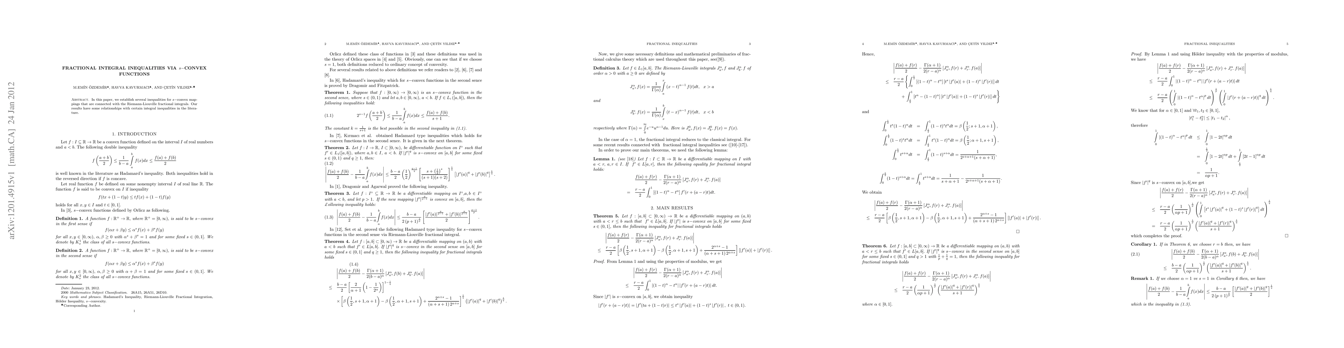 Summary: This paper establishes new inequalities for s-convex mappings linked to Riemann-Liouville fractional integrals, contributing to the broader field of integral inequalities. The results also relate to existing literature in the area.