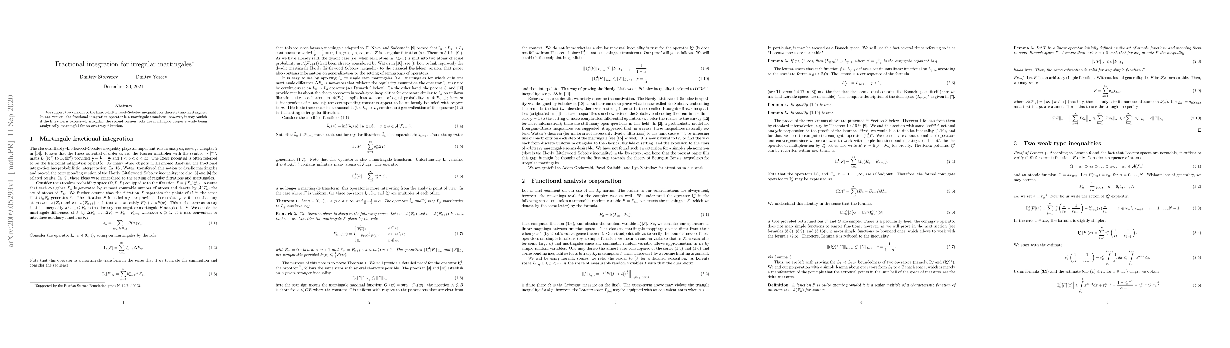 Summary: This paper proposes two versions of the Hardy-Littlewood-Sobolev inequality for discrete time martingales, with one version featuring a fractional integration operator that may vanish under excessive irregularity, and the second version being analytically meaningful for any filtration but lacking the martingale property.