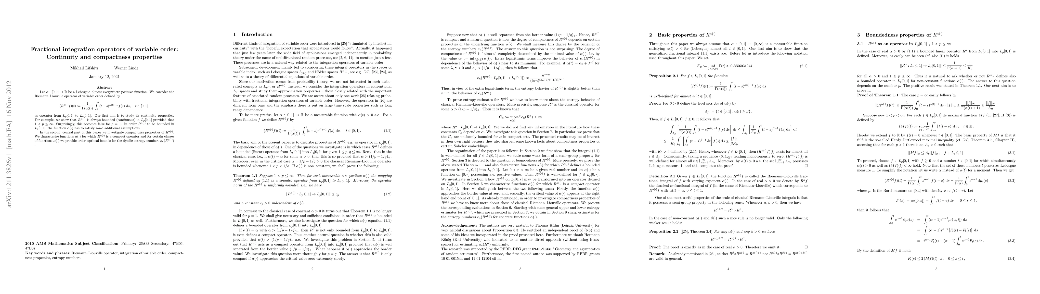 The paper investigates the continuity and compactness properties of a specific fractional integration operator with variable order, focusing on its behavior in different function classes and providing conditions for continuity and compactness.