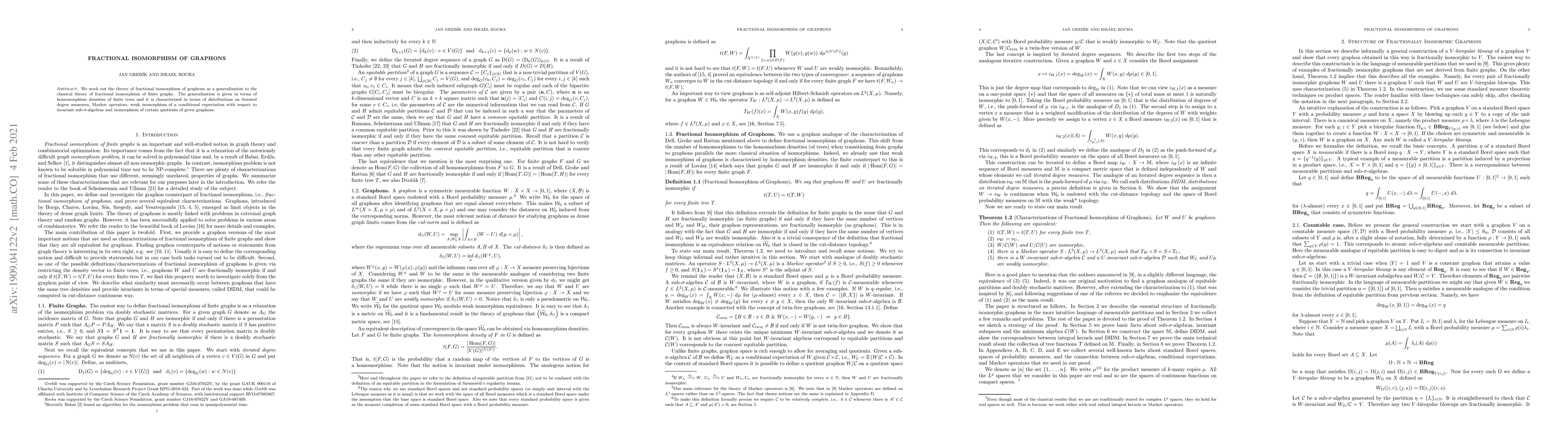 Researchers develop a theory for fractional isomorphism of graphons, extending classical concepts to graphs with infinite edges, using homomorphism densities and distributions on degree measures.