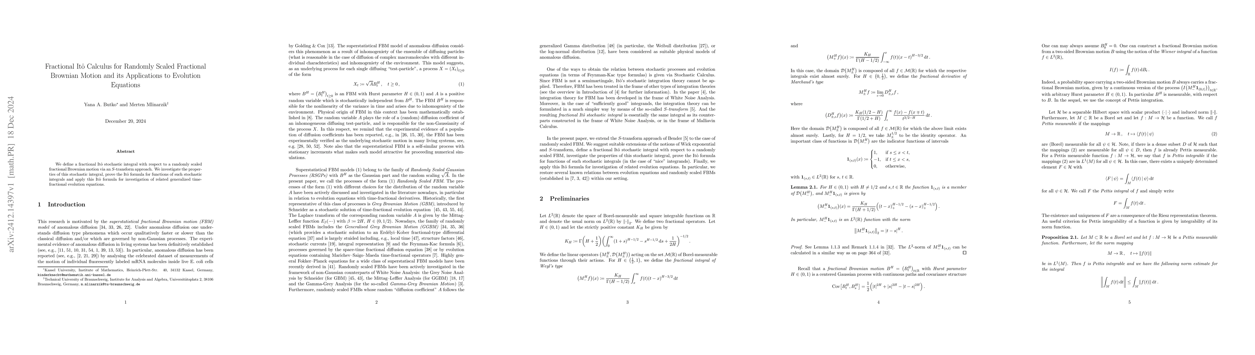 Summary: This paper introduces a fractional Ito stochastic integral based on randomly scaled fractional Brownian motion using an $S$-transform. It establishes properties of the integral, proves the Ito formula for associated functions, and applies this formula to study generalized time-fractional evolution equations.