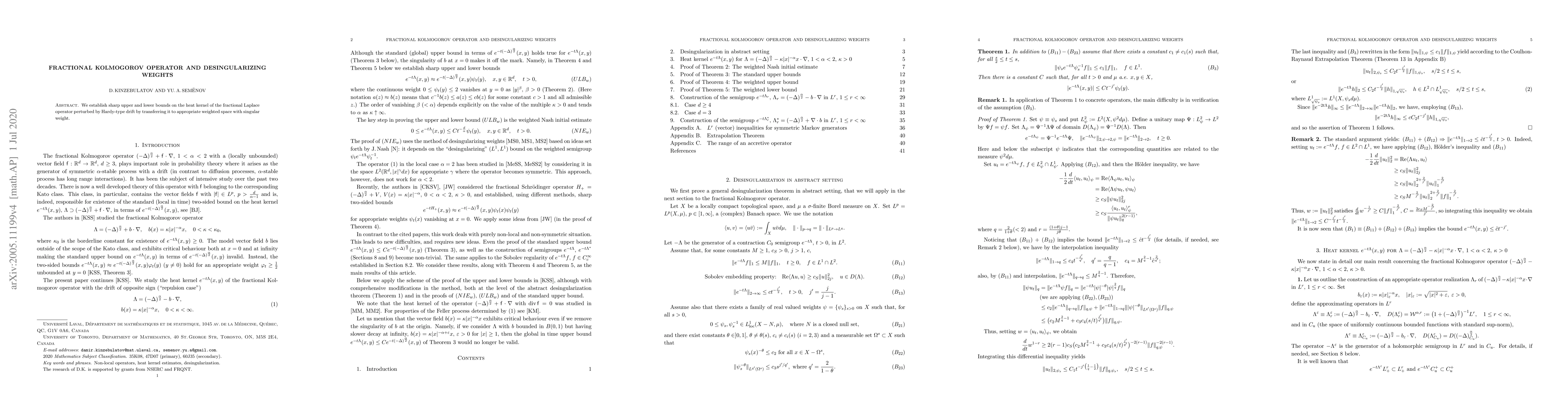 We establish sharp upper and lower bounds on the heat kernel of the fractional Laplace operator perturbed by Hardy-type drift by transferring it to appropriate weighted space with singular weight.