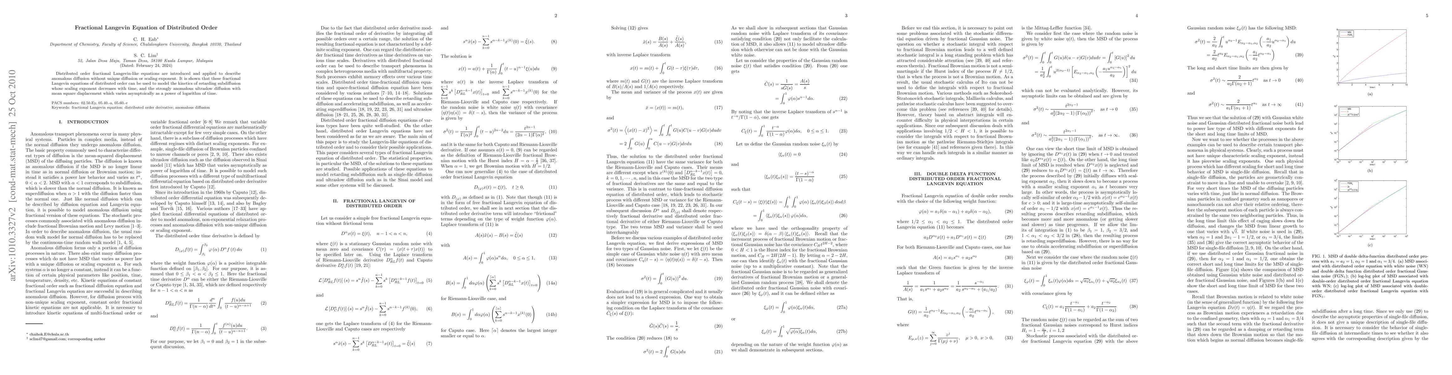 This paper introduces distributed order fractional Langevin equations to model anomalous diffusion processes without a unique diffusion or scaling exponent. It demonstrates their application in modeling retarding subdiffusion and ultraslow diffusion, where the mean square displacement varies as a power of the logarithm of time.