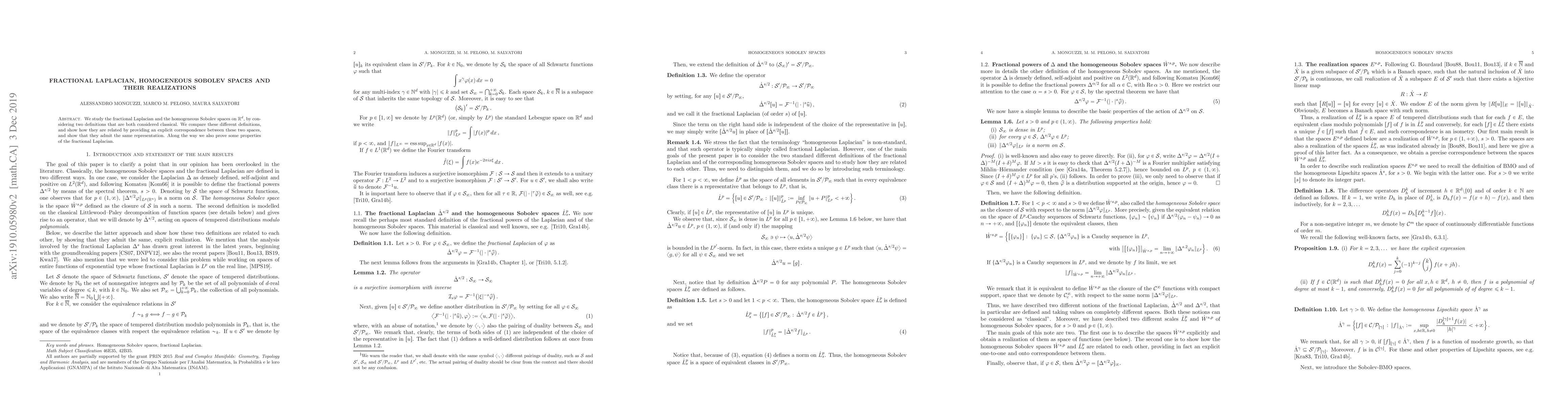 Summary: This paper compares two classical definitions of the fractional Laplacian and homogeneous Sobolev spaces on R^d, establishing an explicit correspondence between them and proving they admit the same representation, while also detailing properties of the fractional Laplacian.