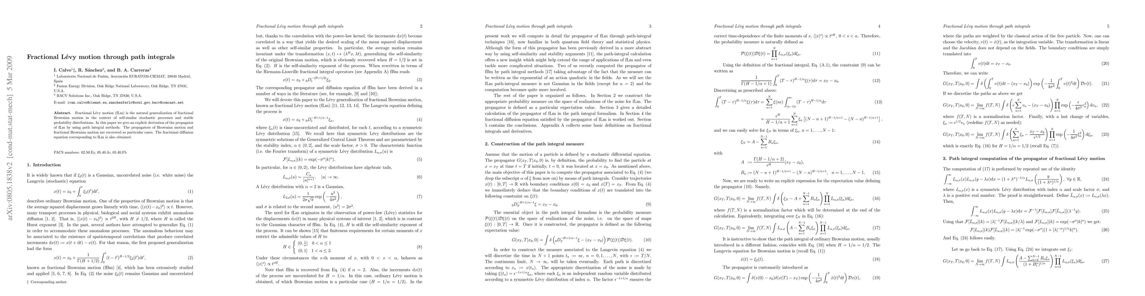 This paper derives the propagator for fractional Levy motion using path integral methods, generalizing fractional Brownian motion and obtaining the fractional diffusion equation, with Brownian and fractional Brownian motion propagators as special cases.