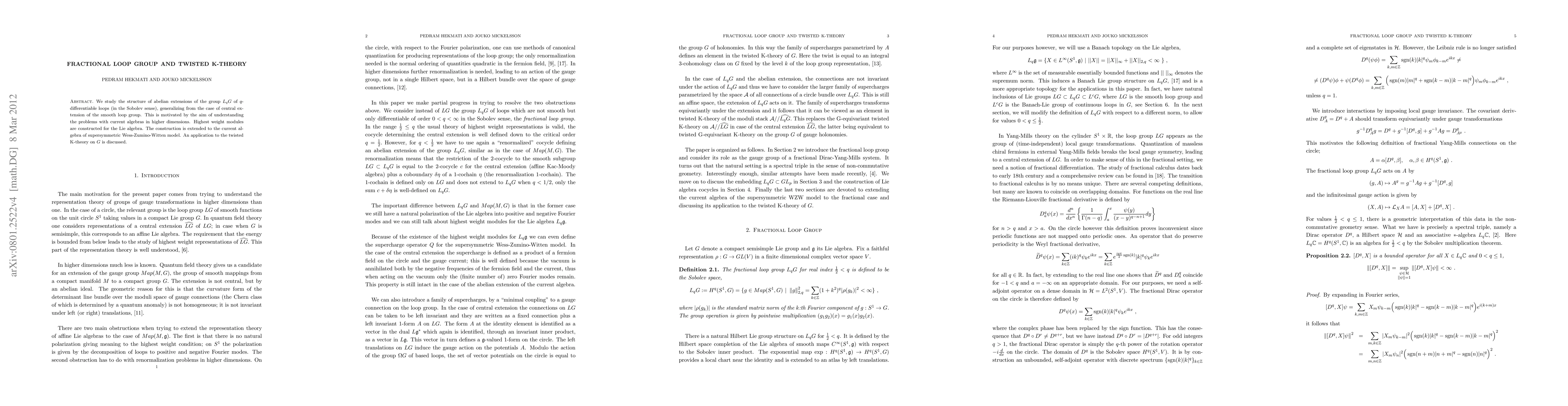 This paper explores abelian extensions of the fractional loop group $L_qG$, constructing highest weight modules for its Lie algebra and extending the construction to the supersymmetric Wess-Zumino-Witten model current algebra. It applies the findings to twisted K-theory on $G$.