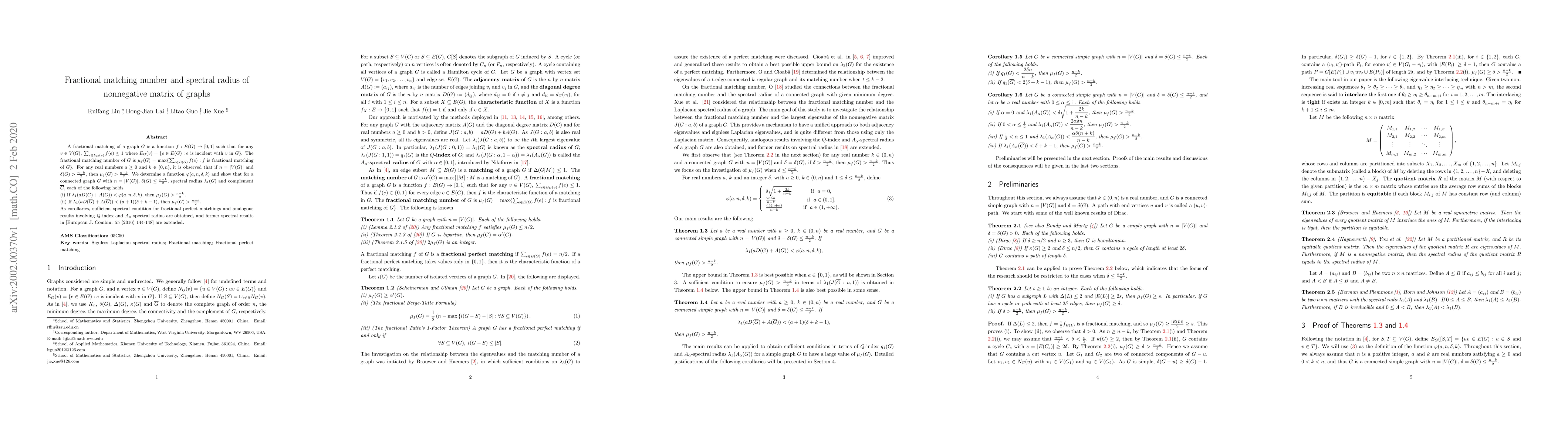 This paper establishes a connection between the fractional matching number of a graph and its spectral radius, providing conditions for guaranteed fractional perfect matchings based on the graph's structure and spectral properties.