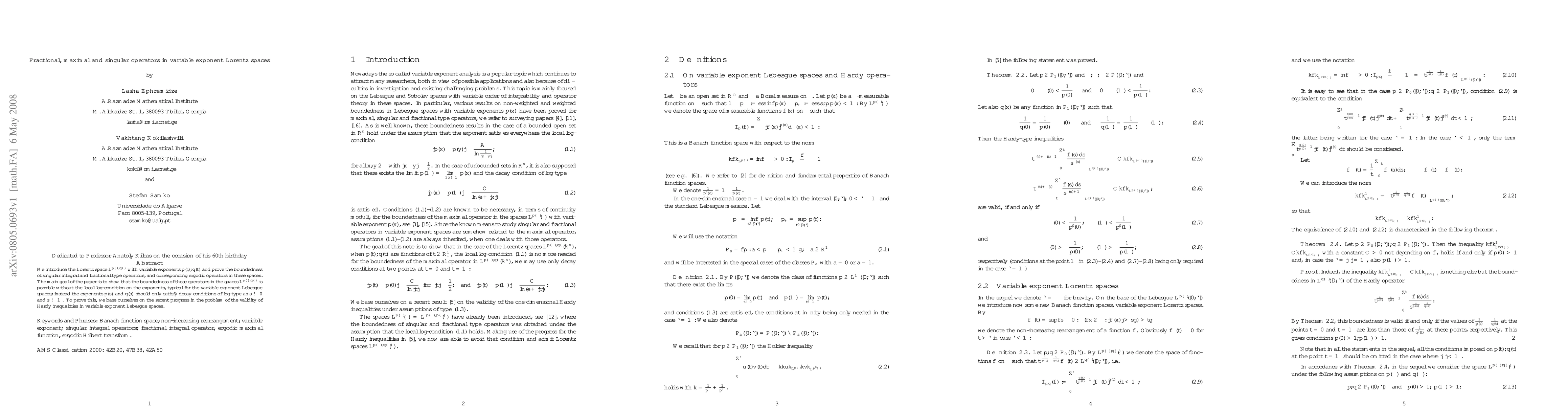 We introduce the Lorentz space $\mathcal{L}^{p(\cdot), q(\cdot)}$ with variable exponents $p(t),q(t)$ and prove the boundedness of singular integral and fractional type operators, and corresponding ergodic operators in these spaces. The main goal of the paper is to show that the boundedness of these operators in the spaces $\mathcal{L}^{p(\cdot), q(\cdot)}$ is possible without the local log-condition on the exponents, typical for the variable exponent Lebesgue spaces; instead the exponents $p(s)$ and $q(s)$ should only satisfy decay conditions of log-type as $s\to 0$ and $s\to\infty$. To prove this, we base ourselves on the recent progress in the problem of the validity of Hardy inequalities in variable exponent Lebesgue spaces.