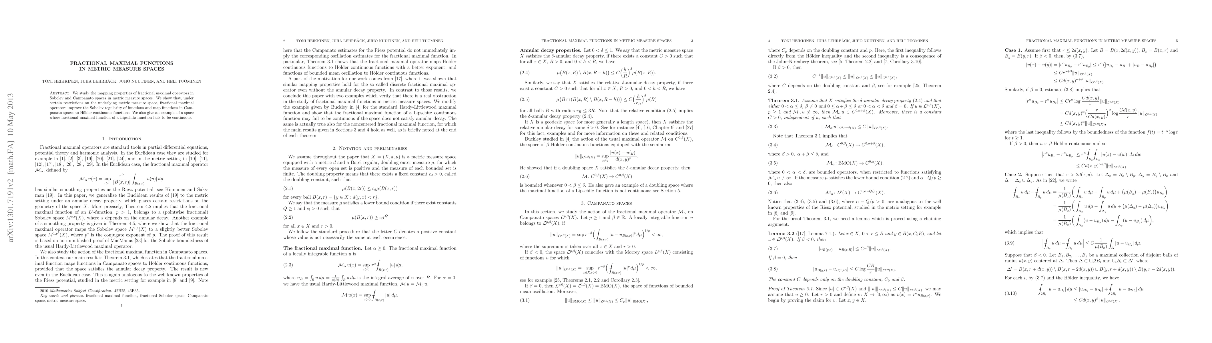 This paper investigates the mapping properties of fractional maximal operators in Sobolev and Campanato spaces within metric measure spaces, demonstrating that these operators enhance Sobolev regularity and map Campanato functions to H\"older continuous functions under specific conditions. The study also provides an example of a space where the fractional maximal function of a Lipschitz function is not continuous.