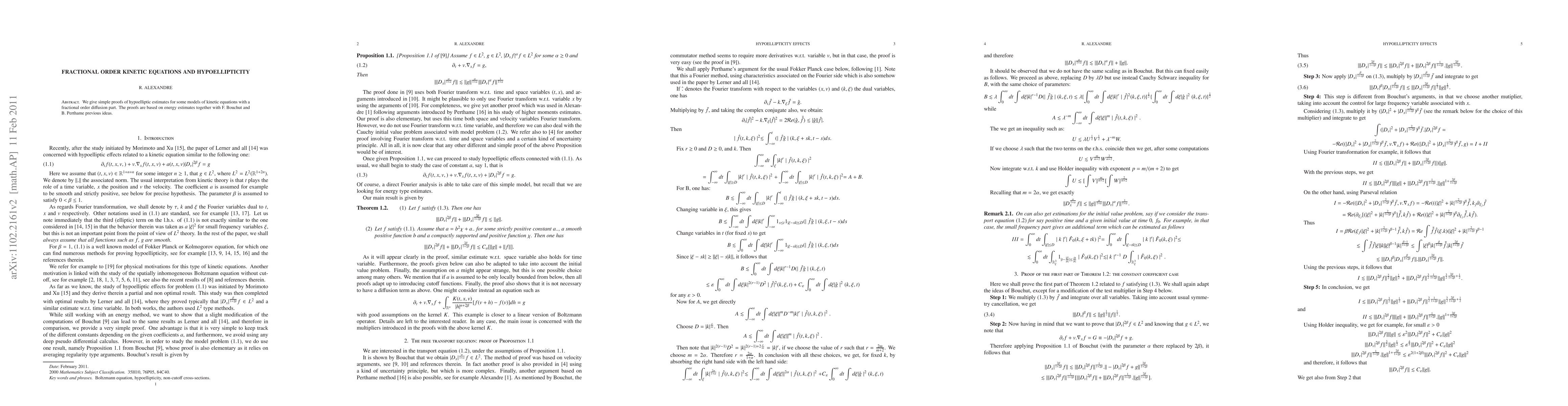 Researchers prove hypoelliptic estimates for kinetic equations with fractional order diffusion, using energy estimates and previous ideas from F. Bouchut and B. Perthame.
