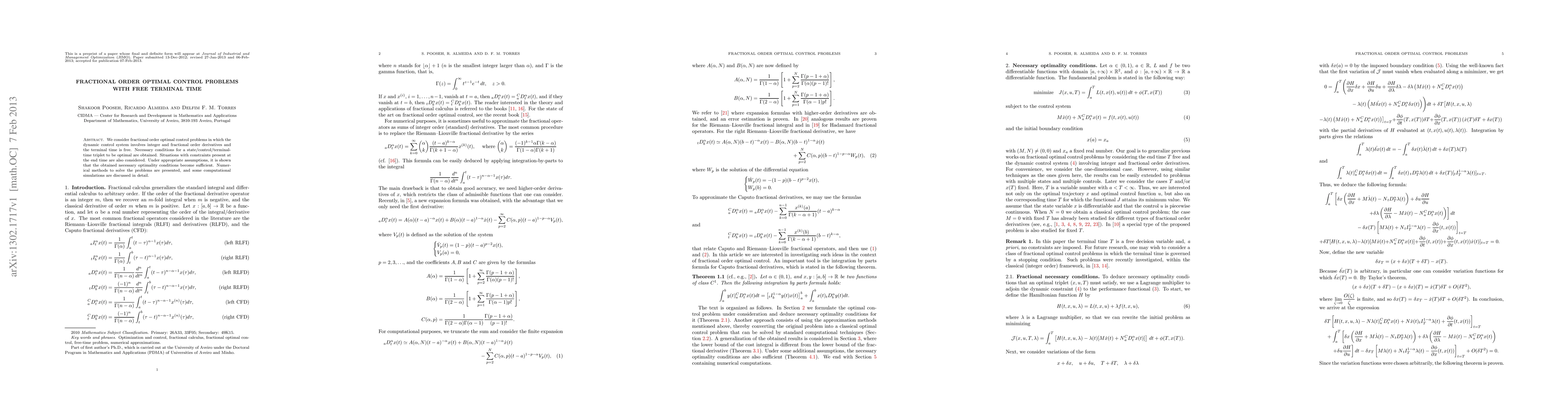 This paper investigates fractional order optimal control problems with free terminal time, deriving necessary and sufficient conditions for optimality. It also addresses constraints at the end time and provides numerical methods for problem resolution, supplemented by detailed computational simulations.