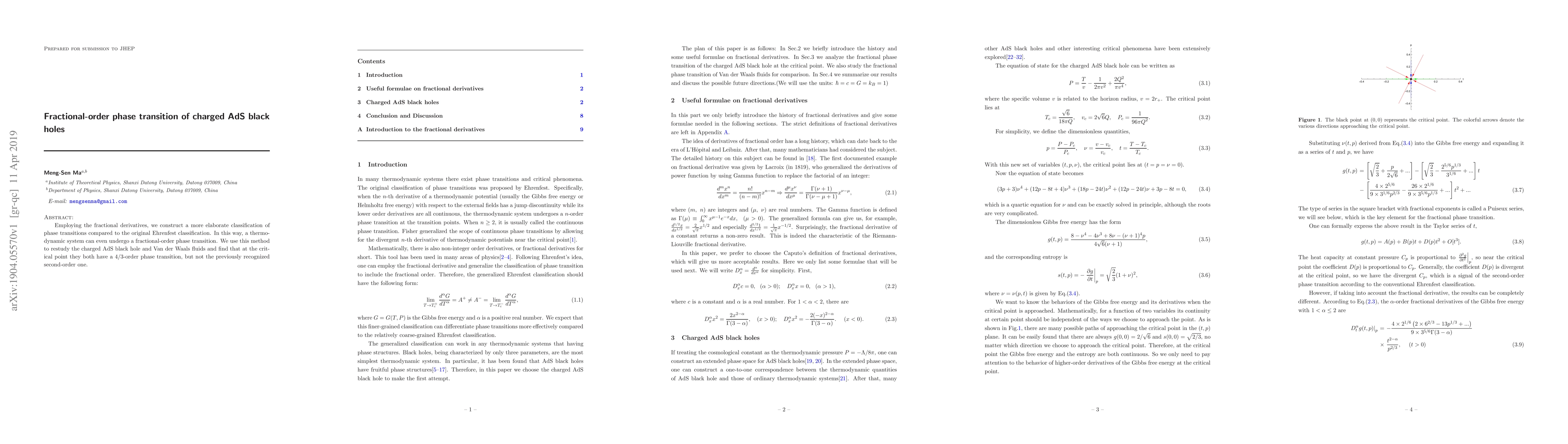 Employing the fractional derivatives, we construct a more elaborate classification of phase transitions compared to the original Ehrenfest classification. In this way, a thermodynamic system can even undergo a fractional-order phase transition. We use this method to restudy the charged AdS black hole and Van der Waals fluids and find that at the critical point they both have a $4/3$-order phase transition, but not the previously recognized second-order one.