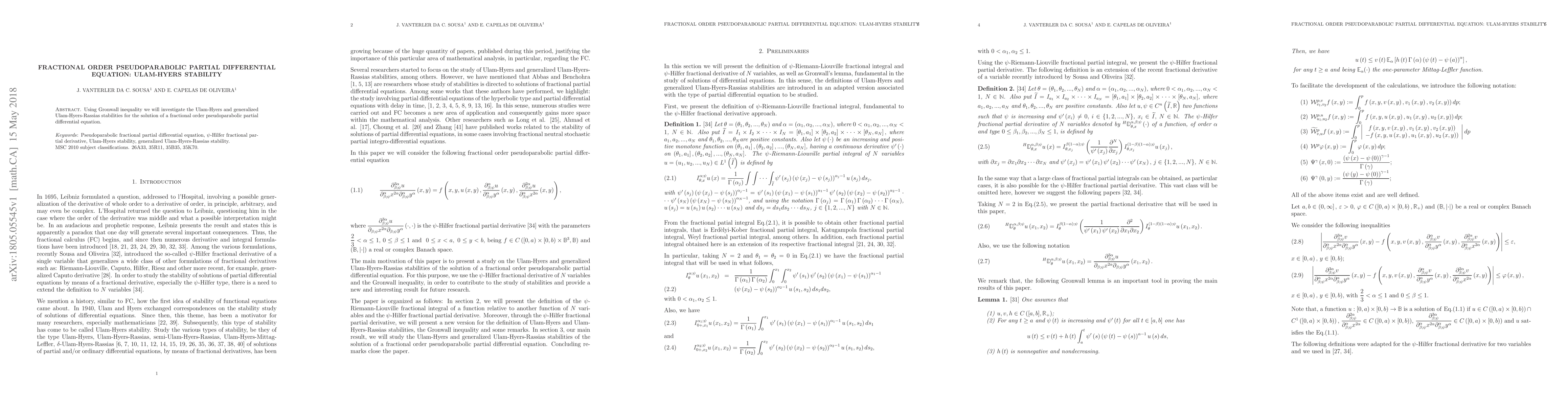 The paper introduces new stability results for fractional order pseudoparabolic partial differential equations, utilizing the ψ-Hilfer fractional derivative and Gronwall inequality.