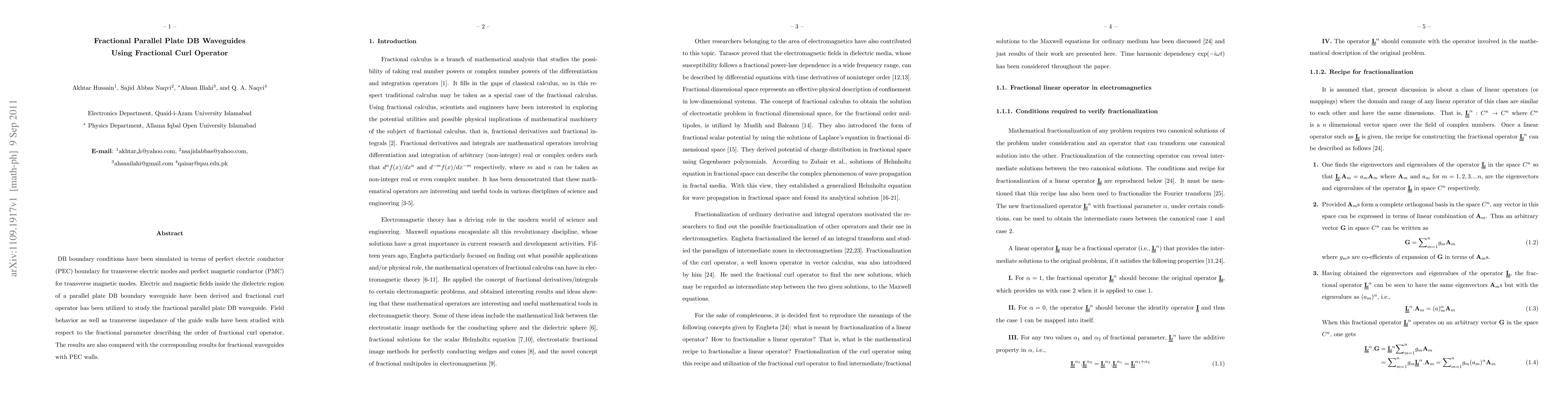 DB boundary conditions have been simulated in terms of perfect electric conductor (PEC) boundary for transverse electric modes and perfect magnetic conductor (PMC) for transverse magnetic modes. Electric and magnetic fields inside the dielectric region of a parallel plate DB boundary waveguide have been derived and fractional curl operator has been utilized to study the fractional parallel plate DB waveguide. Field behavior as well as transverse impedance of the guide walls have been studied with respect to the fractional parameter describing the order of fractional curl operator. The results are also compared with the corresponding results for fractional waveguides with PEC walls.