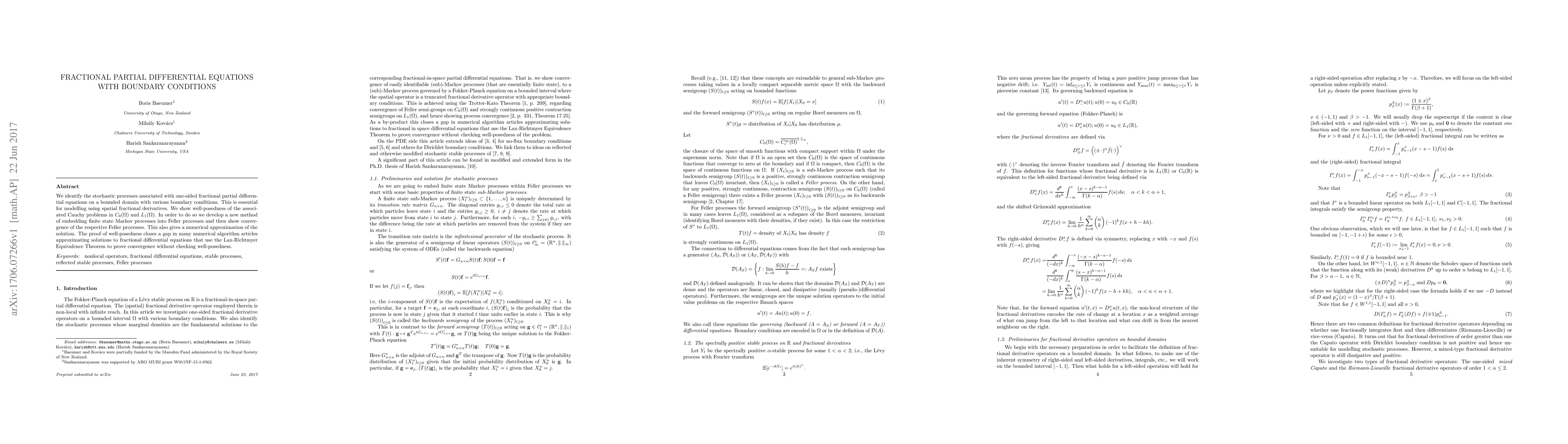 We identify the stochastic processes associated with one-sided fractional partial differential equations on a bounded domain with various boundary conditions. This is essential for modelling using spatial fractional derivatives. We show well-posedness of the associated Cauchy problems in $C_0(\Omega)$ and $L_1(\Omega)$. In order to do so we develop a new method of embedding finite state Markov processes into Feller processes and then show convergence of the respective Feller processes. This also gives a numerical approximation of the solution. The proof of well-posedness closes a gap in many numerical algorithm articles approximating solutions to fractional differential equations that use the Lax-Richtmyer Equivalence Theorem to prove convergence without checking well-posedness.