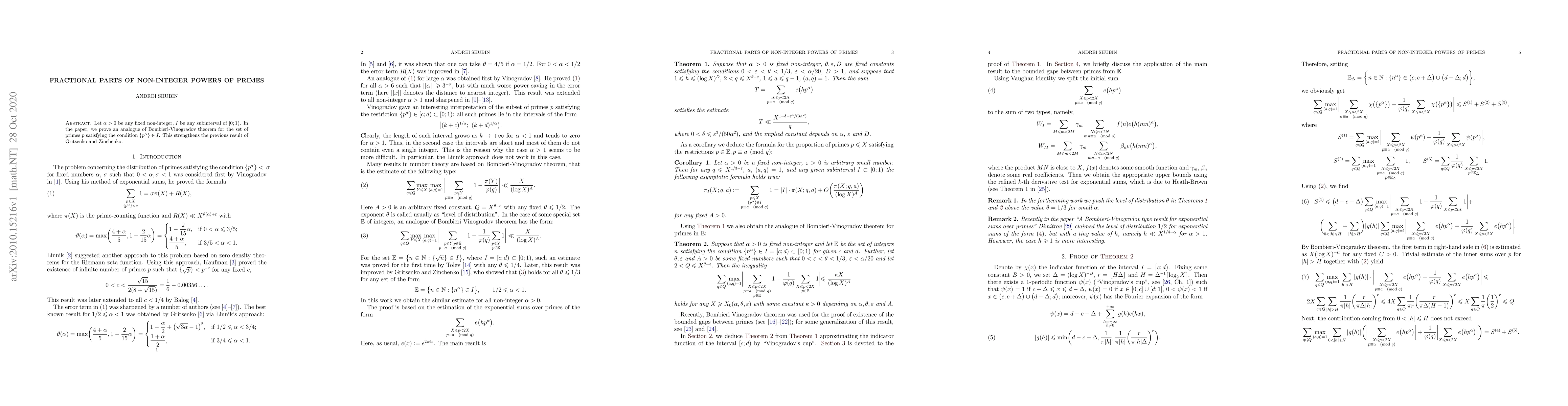 Let $\alpha > 0$ be any fixed non-integer, $I$ be any subinterval of $[0; 1)$. In the paper, we prove an analogue of Bombieri-Vinogradov theorem for the set of primes $p$ satisfying the condition $\{ p^{\alpha} \} \in I$. This strengthens the previous result of Gritsenko and Zinchenko.