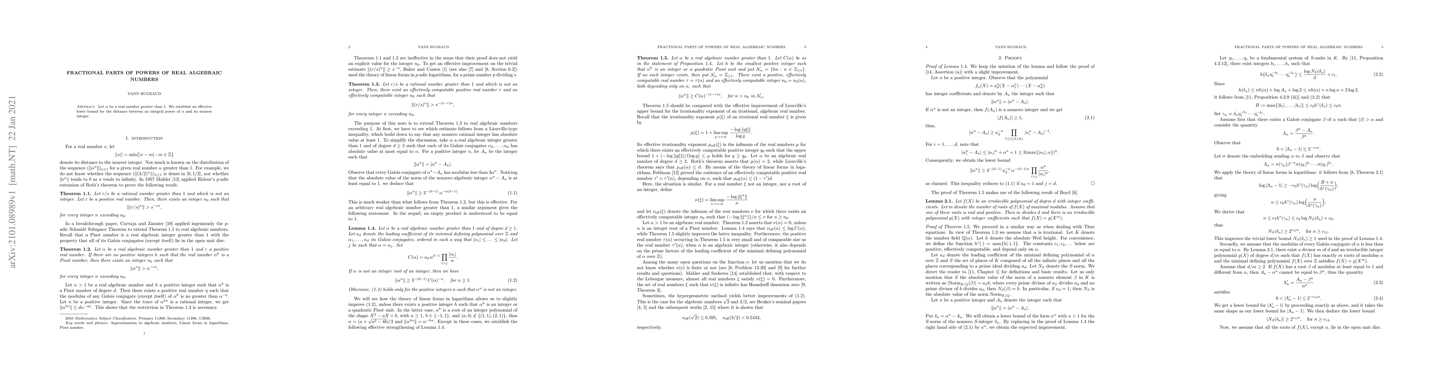 Let $\alpha$ be a real number greater than $1$. We establish an effective lower bound for the distance between an integral power of $\alpha$ and its nearest integer.