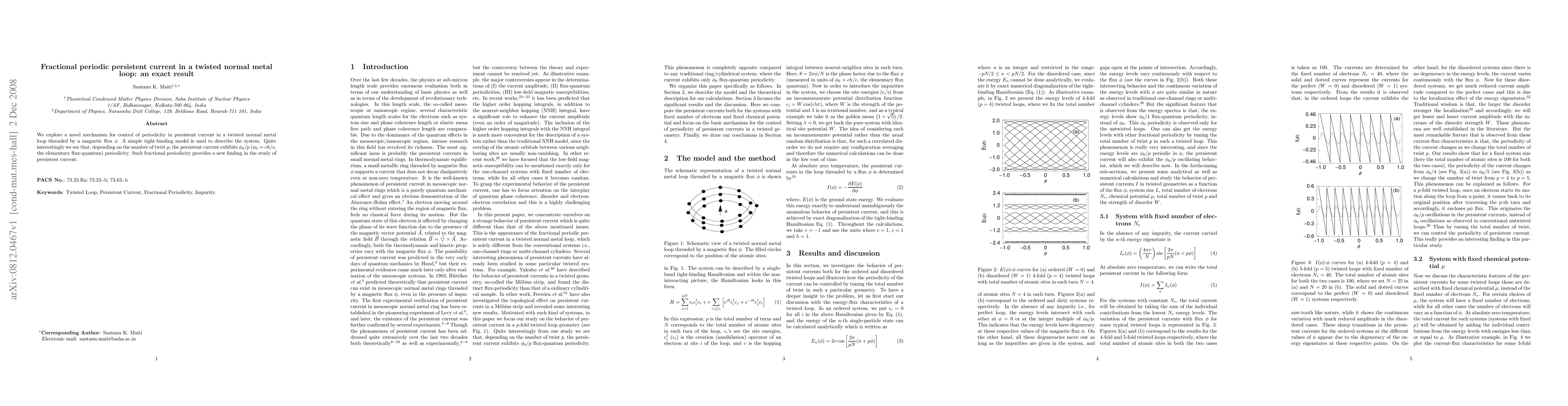 Summary: This paper investigates a twisted normal metal loop with a magnetic flux, revealing that the persistent current exhibits fractional periodicity $\phi_0/p$ depending on the twist number $p$, offering a new insight into persistent current behavior.