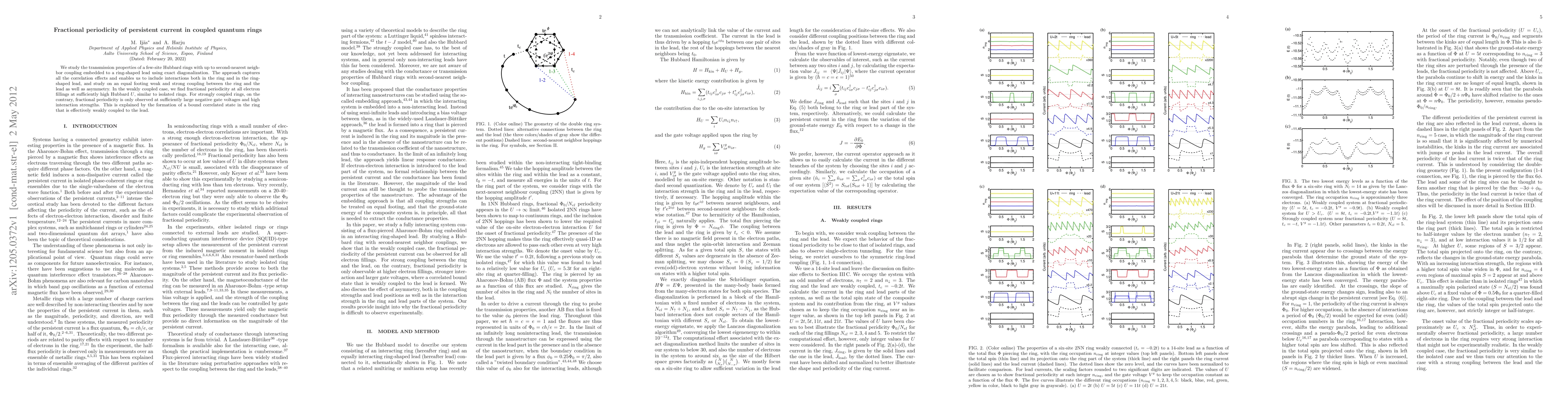 Researchers studied the properties of coupled quantum rings using exact diagonalization, finding that fractional periodicity occurs in weakly coupled systems at high Hubbard U, but is only observable in strongly coupled systems under specific conditions.