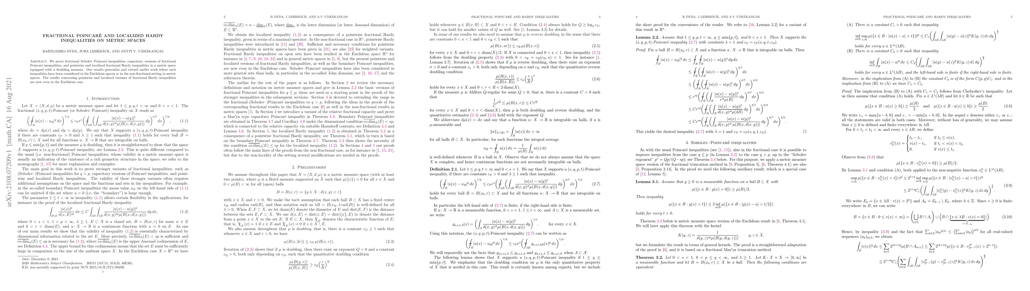 This paper establishes fractional Sobolev-Poincaré and capacitary inequalities, as well as new pointwise and localized fractional Hardy inequalities in metric spaces with doubling measures, extending previous results from Euclidean and non-fractional settings. The localized fractional Hardy inequalities are novel even in Euclidean contexts.